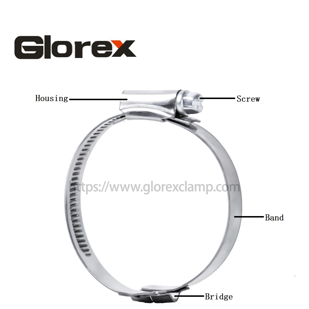 Bridge hose clamp can be fastened by a special bridge structure, effectively prevents leakage, can be reused, has good corrosion resistance, and meets RoHS standards.